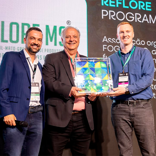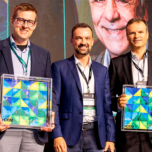 Antes do tradicional coquetel que fecha o primeiro dia do evento, aconteceu a premiação do 3º Prêmio HDOM. Com mais de 3.500 votos na votação aberta, e uma etapa que ouviu 35 líderes do setor florestal brasileiro, foram escolhidos os vencedores das cinco categorias que compuseram a terceira edição do Prêmio HDOM.